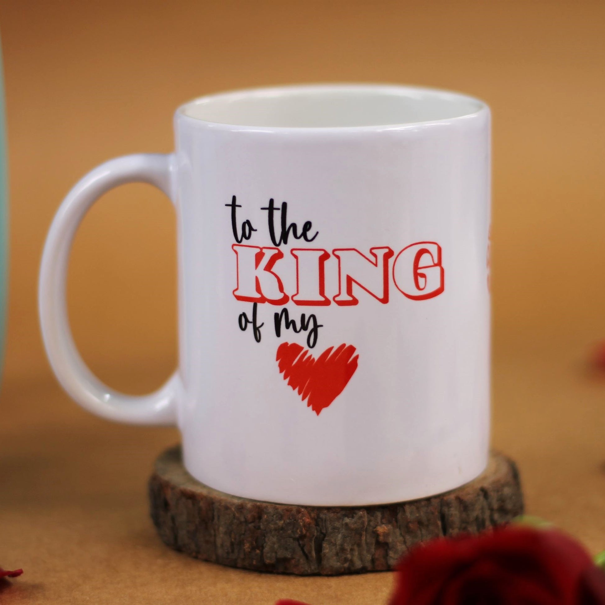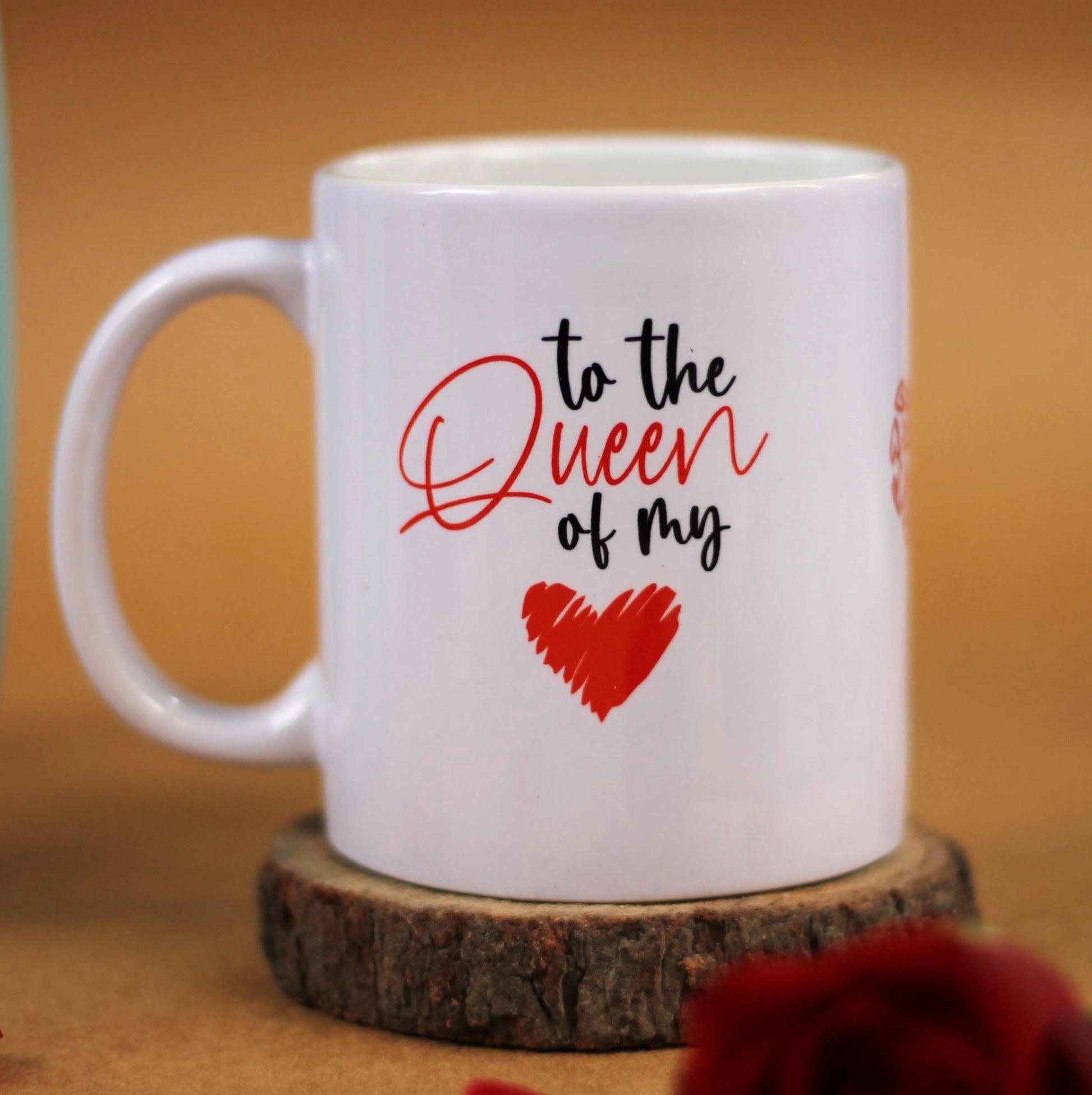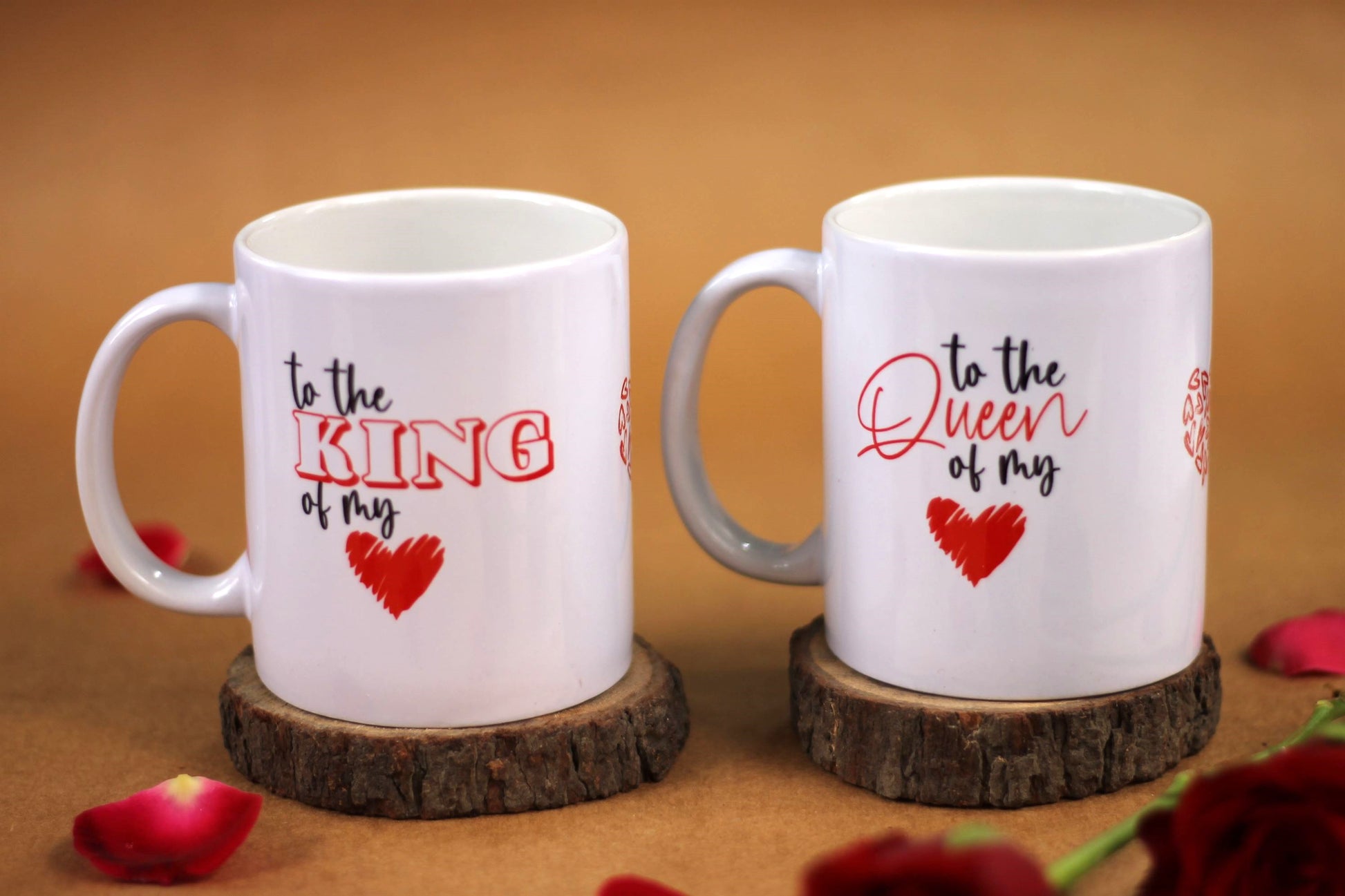 Introducing our Royal Love Mug Combo Set, a regal expression of affection fit for a king and queen. This enchanting set features two White Ceramic Mugs, each bearing a heartfelt proclamation. The first mug declares, "To the Queen of my Heart," and the second one, "To the King of my Heart." Sip your favorite beverages together and revel in the warmth of love with these elegantly designed mugs. Celebrate Valentine's Day with a touch of royalty, as you and your beloved share not just drinks, but a special connection that makes each moment majestic. Elevate your love story with this charming mug duo, a perfect gift to honor the royalty within your hearts.