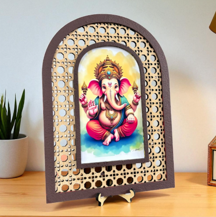 - 1 Rattan Mesh Styled Ganesha Photo Frame (customizable) : 8x11 inches